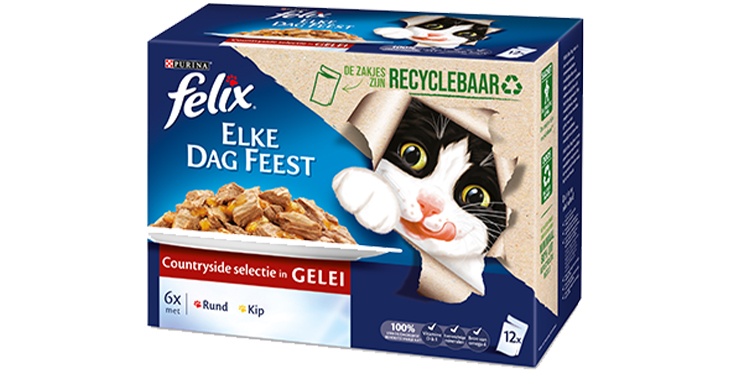 Purina ha lanzado el primer envase de plástico flexible reciclable para alimentos húmedos para mascotas, el primero en su tipo, a partir de este mes. La innovación se introducirá por primera vez bajo la marca Felix en los Países Bajos como parte de un piloto de un año.